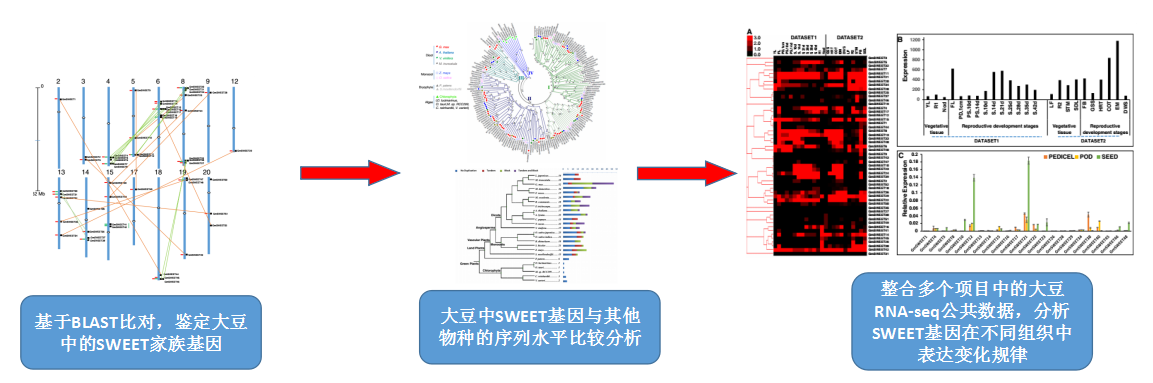 大豆研究套餐: 整個多個大豆RNA-seq公共數(shù)據(jù),分析SWEET基因家族在大豆生殖組織與營養(yǎng)組織間表達(dá)變化規(guī)律