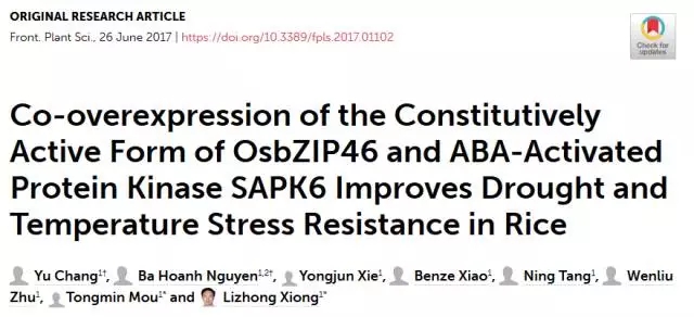 中文題目:OsbZIP46、SAPK6基因共同過表達(dá)提升水稻抗旱能力